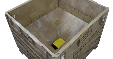 | The slide gate allows one person to control the flow and safely remove all or part of the contents. | Structural foam molded HDPE construction resists impact, moisture, and most chemicals. | The hopper bottom collapses to 29" for return shipping and storage. 78 hoppers collapsed fit 53' trailer. |